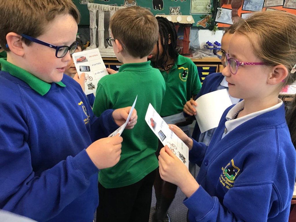 Substitute one element in a simple phrase or sentence to vary the meaning (e.g. the colour adjective or the noun).